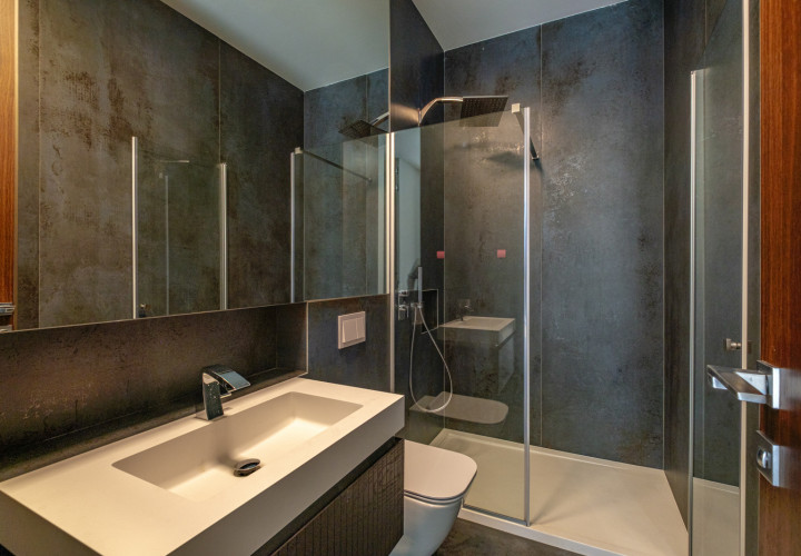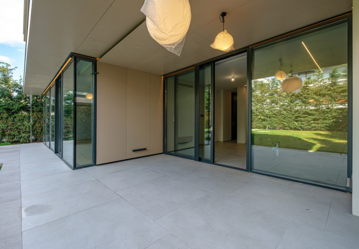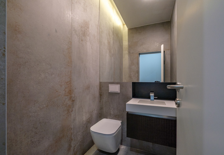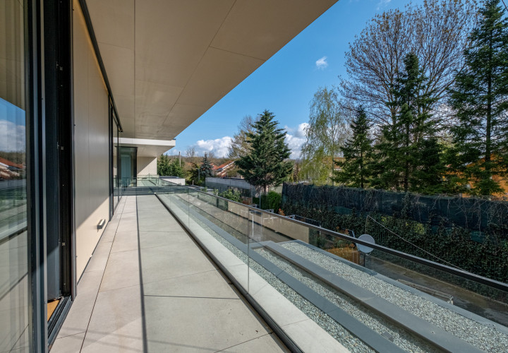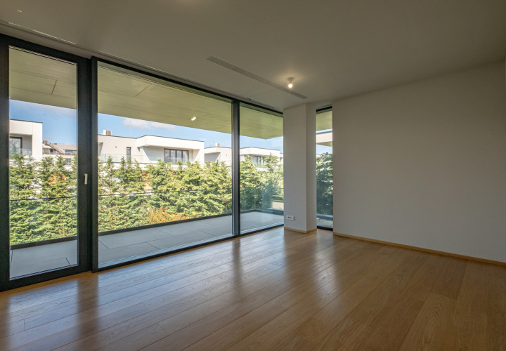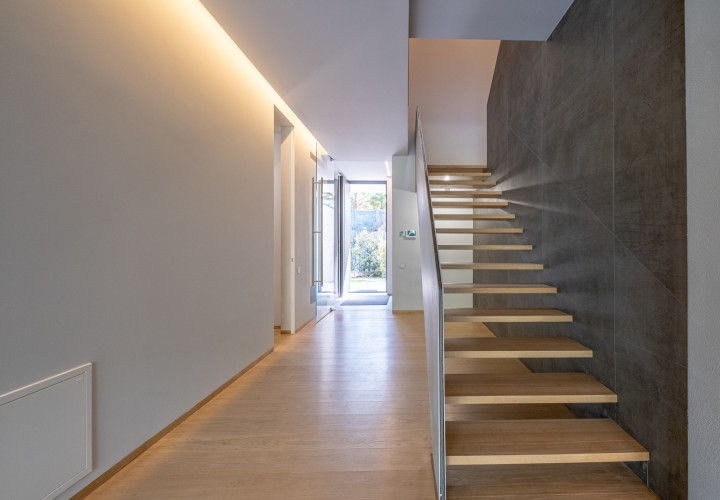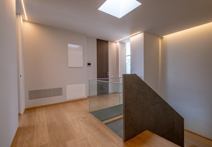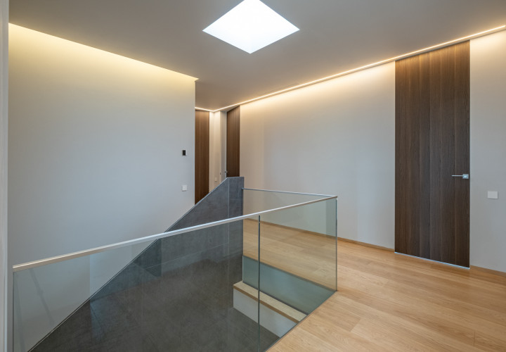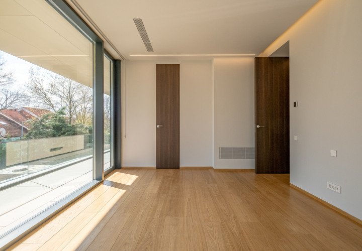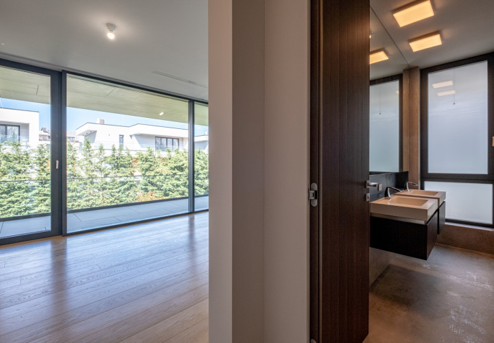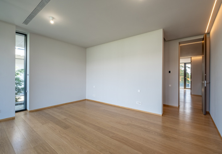 Upstairs, four bedrooms each with en-suite bathroom. The master suite features a separate dressing room, a 10 sqm bathroom and a private terrace.