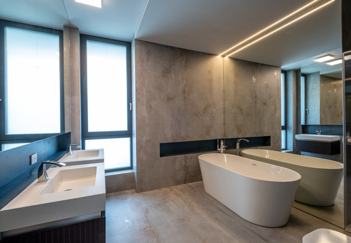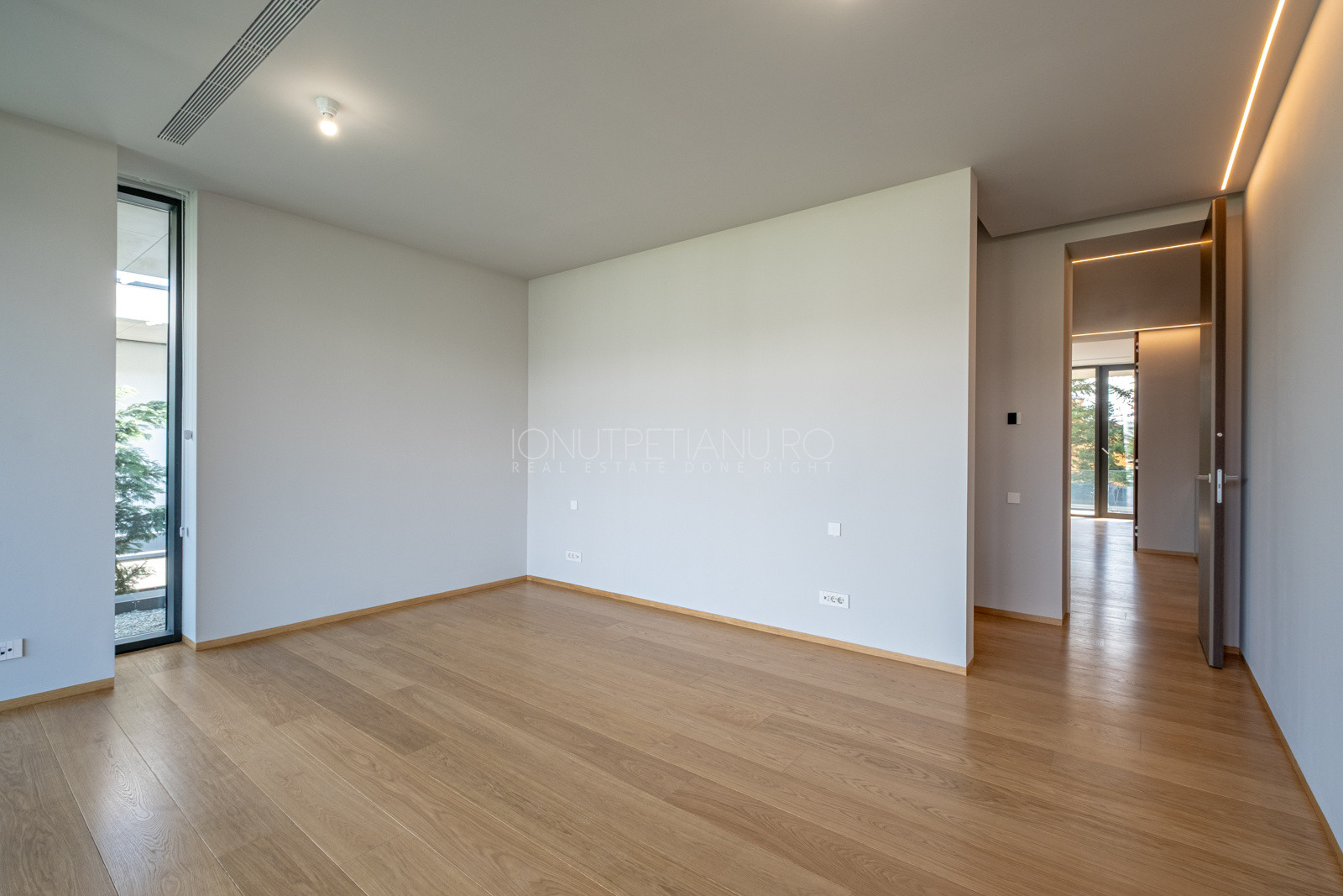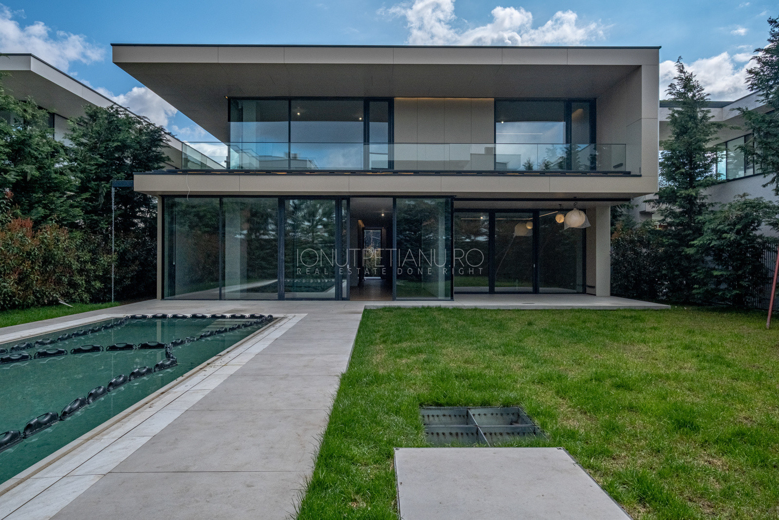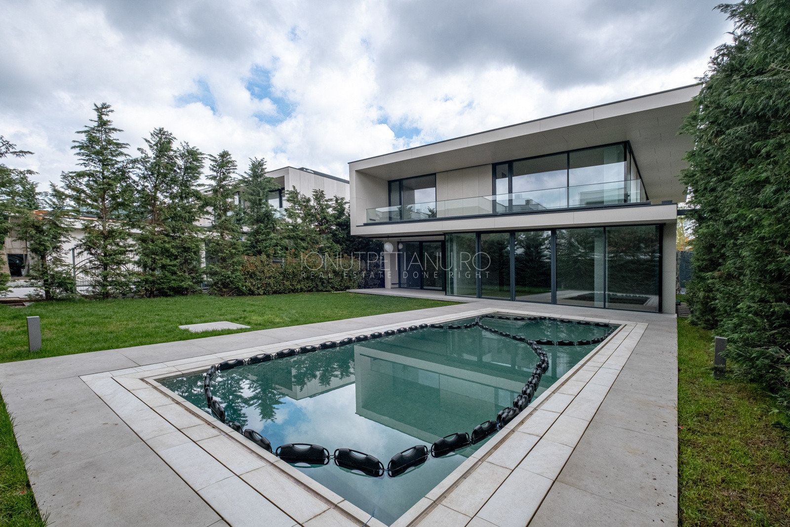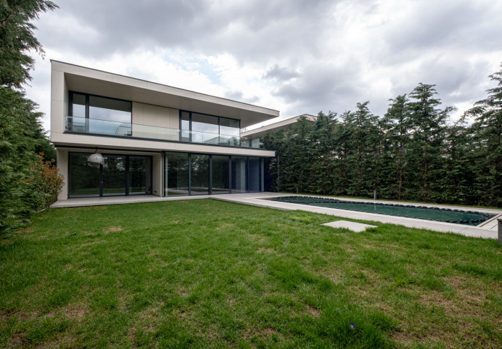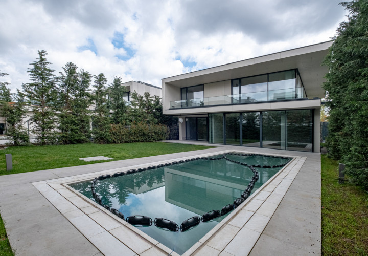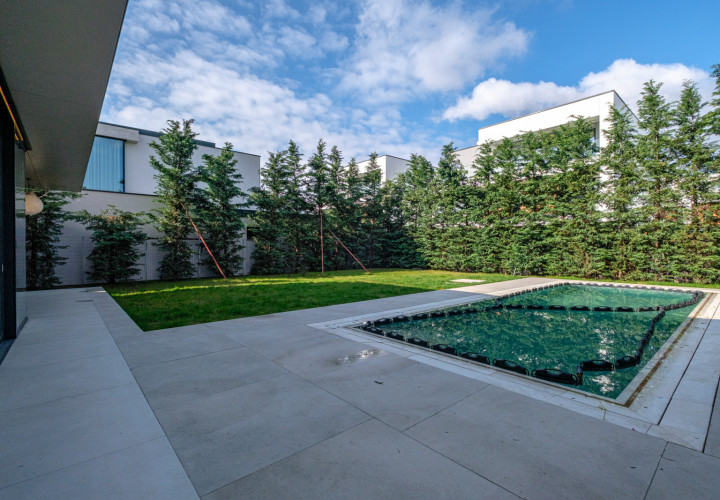 Recently completed and immediately available, this 440 sqm contemporary villa sets a new benchmark for premium living in Pipera. Set on an 800 sqm plot, floor-to-ceiling glazing dissolves the boundary between inside and out — the courtyard becomes an extension of the living space.