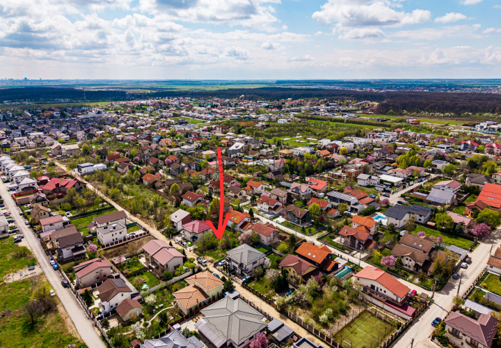 Parametrii urbanistici — POT 35%, CUT 1.0 — permit ridicarea unei case P+1+mansarda, cu o amprenta la sol de aproximativ 213 mp si o suprafata construita desfasurata de peste 600 mp. Suficient spatiu pentru o locuinta generoasa, cu gradina, acces auto confortabil si zona de relaxare exterioara.